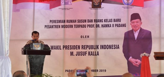 Dalam rangkaian kegiatan di Sumatera Barat, Wakil Presiden (Wapres) Jusuf Kalla juga melakukan Peresmian Gedung Asrama Putri dan ruang kelas baru di Pondok Modern Terpadu Prof. Hamka II. Dalam sambutannya, Wapres menegaskan mengenai peran penting Pondok Pesantren Modern Terpadu dalam menanamkan nilai-nilai Islam Wasatiyah (moderat-jalan tengah) kepada para santrinya. “Dewasa ini terjadi peningkatan semangat keagamaan yang luar biasa. Antara lain ditandai penuhnya tempat ibadah. Namun itu perlu dilengkapi dengan pemahaman Islam yang Wasatiyah,” ujarnya. “Tidak ke kiri tidak ke kanan. Apalagi sangat kiri atau sangat kanan, atau radikal. Karena itulah tugas berat atau tugas utama para pendidik, para guru, usatad dan ustadzah tentu seperti itu,” imbuhnya.